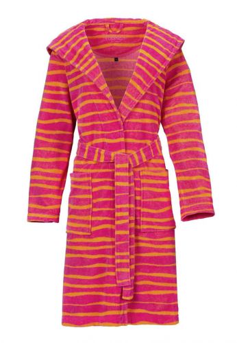 Deze lichte kamerjas met roze-oranje streepdessin valt soepel om uw lichaam. Materiaalmix van 80% katoen en 20% polyester.
